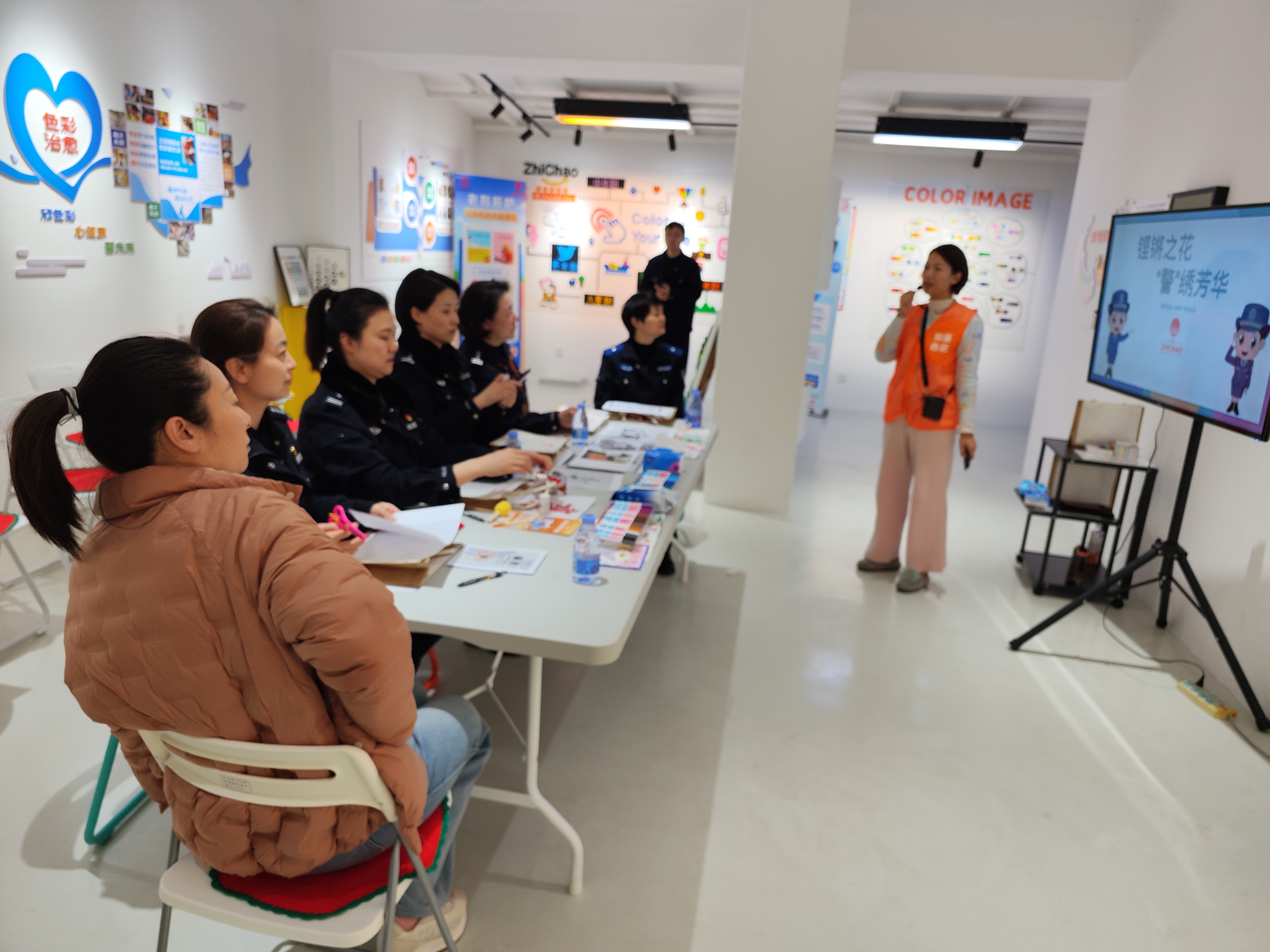 女(nǚ)神節專場(chǎng)活動中,姜老(lǎo)師(shī)給塘橋鎮派出所的(de)民(mín)警們帶來(lái)了(le)有(yǒu)關色彩的(de)相(↕xiàng)關信息,考慮到(dào)民(mín)警的(de)工(gōng)作(zuò)性質,科(kē)普了(le)色彩中五色五味與五髒的(de)關系 ,匹配合适的(de)色彩飲食;了(le)解了(♣le)色彩如(rú)何讓情緒更加穩定。