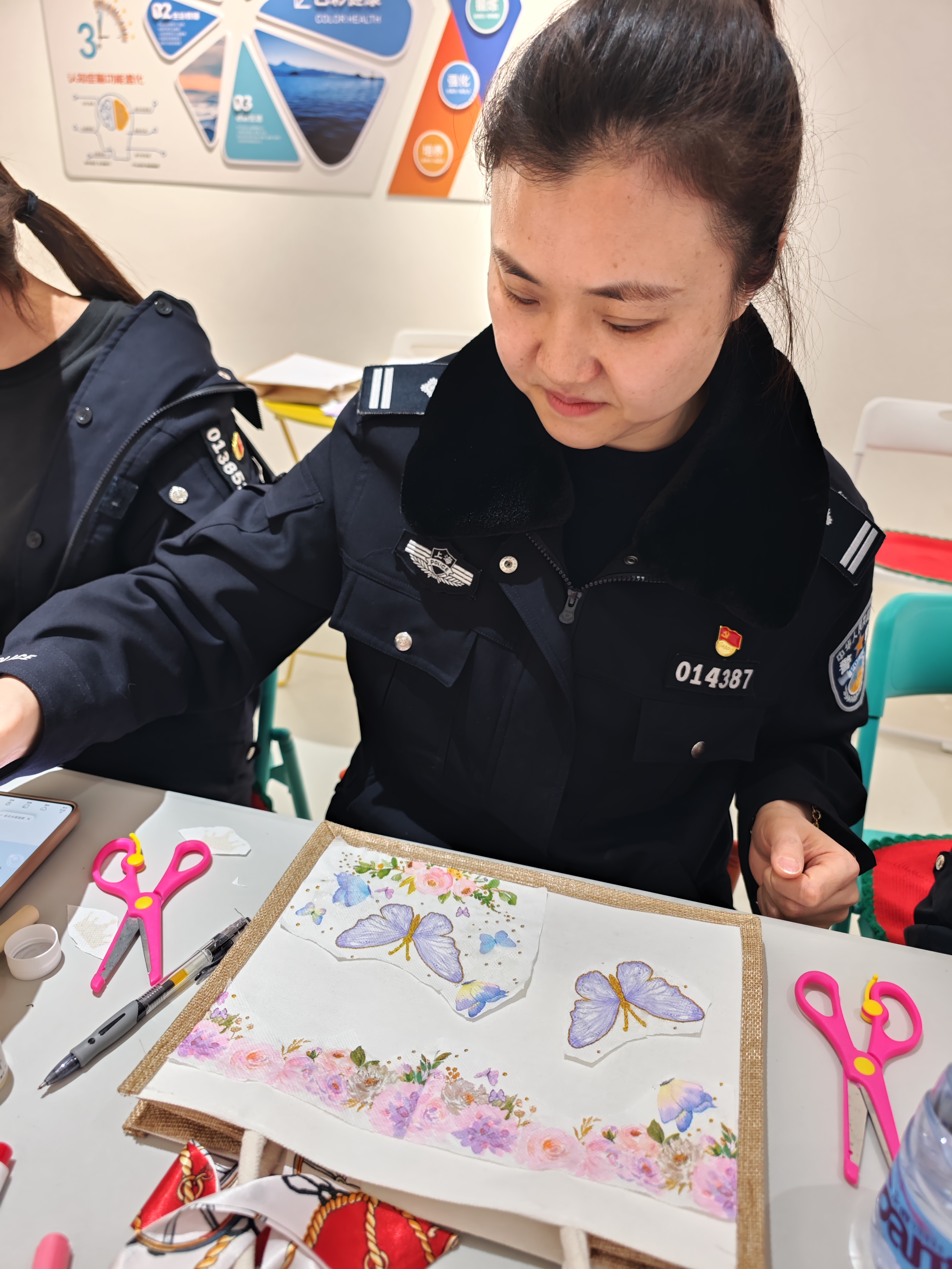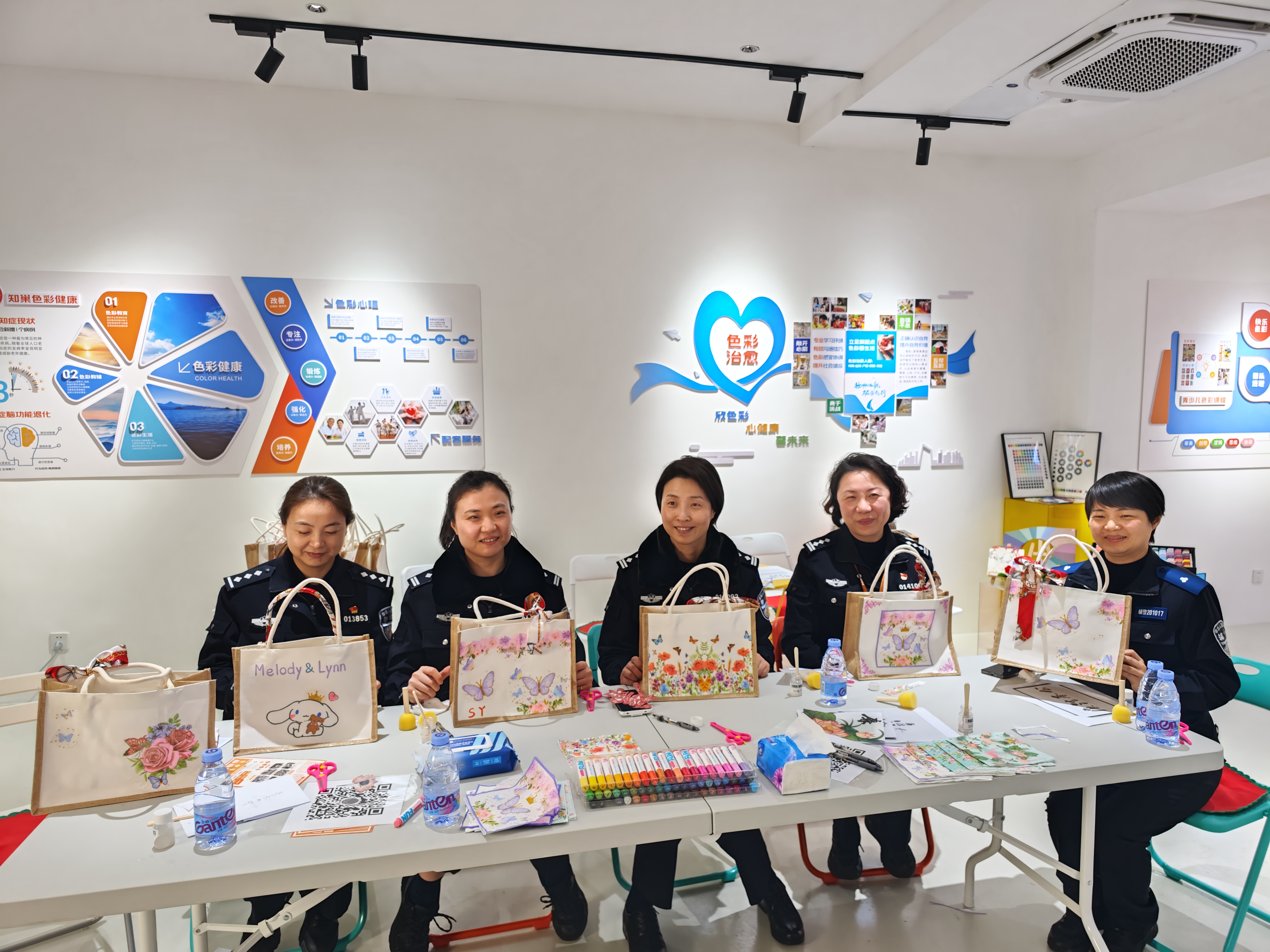 女(nǚ)幹警們邊看(kàn)邊學,積極發揮個(gè)人(rén)創造力,看(kàn)到(dào)自(zì)己“獨一(yī)無二”的(de)作(zuò)品,每個(gè)人(rén)的(de)臉上(shàng)都(dōu)展開(kāi)了(le)如(rú)花(huā)般的(de)笑(xiào©)容。