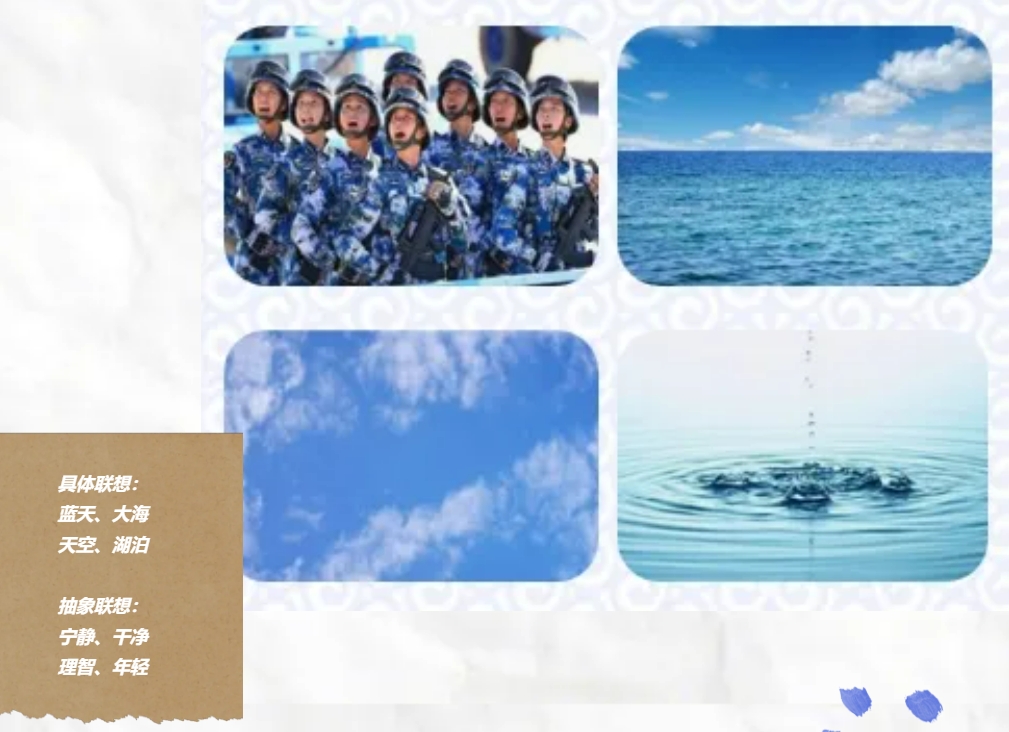 藍(lán)色作(zuò)為(wèi)一(yī)種色彩,?在心理(lǐ)和(hé)象征意義上(shàng)承λ載著(zhe)豐富的(de)含義。?當人(rén)們看(kàn)到(dào)藍(lán)色時(shí),?←往往會(huì)聯想到(dào)海(hǎi)洋、?天空(kōng)、?水(shuǐ)、?宇宙等自(zì)然元素,?這(zhè)些(xiē)象征物(w®ù)給人(rén)一(yī)種美(měi)麗(lì)、?冷(lěng)靜(jìng)、?理(lǐ)智、?安詳與廣闊的(de)感覺。?