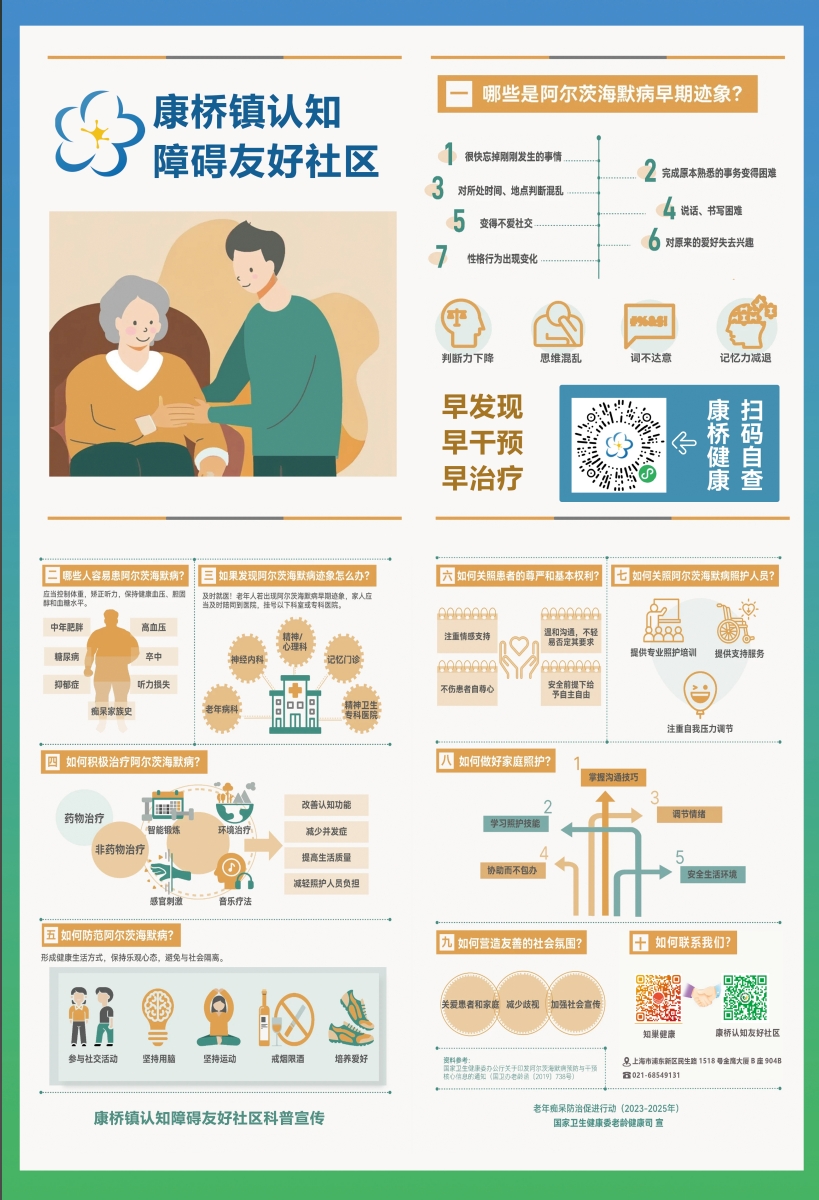 簽約&科(kē)普活動結束,63個(gè)村(cūn)居委和(hé)18個(gè)睦鄰點站(zhàn)長(cháng)在轄區(qū)內(nèiλ)各小(xiǎo)區(qū)組隊張貼宣傳海(hǎi)報(bào),做(zuò)到(dào)在康橋鎮內(nèi)認知(zhī)障礙宣傳科(∑kē)普全覆蓋!