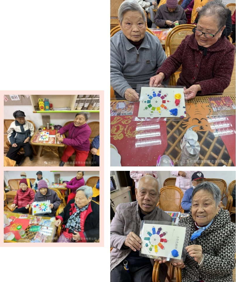 黏土(tǔ)混合顔色是(shì)一(yī)個(gè)很(hěn)有(yǒu)意思的(de)過程,這(zhè)項練習(xí)鍛煉了(le)長(cháng)者們₩的(de)色彩感知(zhī)能(néng)力~在混合顔色的(de)過程中,通(tōng)過直觀看(kàn)到(dào)不(b£ù)同顔色混合後産生(shēng)的(de)變化(huà)。